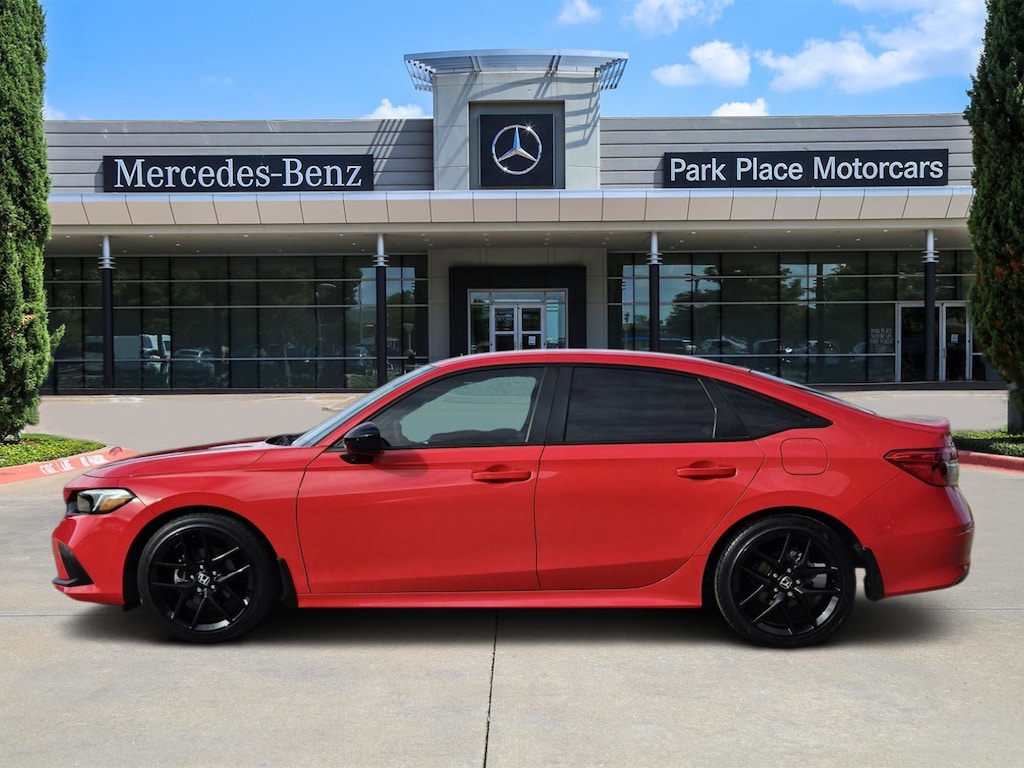 2023 Honda Civic Sport 4D Sedan Rallye Red FWD 2.0L I4 DOHC 16V i-VTEC 18 Gloss Black Alloy Wheels, Black w/Cloth Seat Trim.CARFAX One-Owner. 30/37 City/Highway MPG